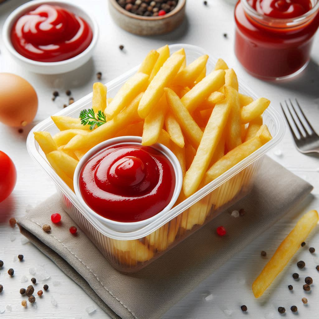 Papas a la Francesa – Deliciosas Papas fritas, clásicas y crujientes, acompáñalas con Ketchup y salsita picante.