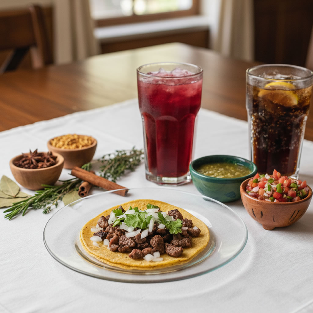 Delicioso Taco de Bistec de Res Asado acompañado de ricas papas a la francesa. (El tamaño de la tortilla es tradicional de 15 a 18 cm de diámetro aprox.)