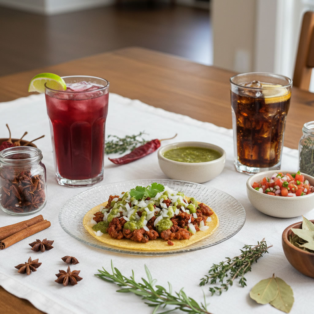 Delicioso Taco de Chorizo acompañado de ricas papas a la francesa. (El tamaño de la tortilla es tradicional de 15 a 18 cm de diámetro aprox.)
